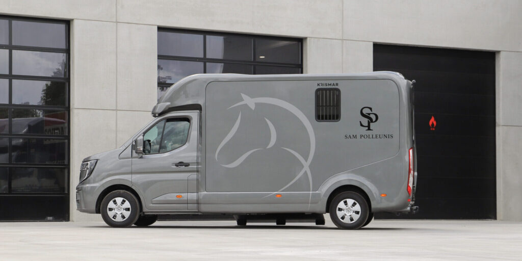 We proudly delivered this Krismar 2-horse in stallion configuration to rider Sam Polleunis, expanding his Krismar fleet with a new vehicle built for daily use. It now stands alongside his Krismar Professional 8 and is the ideal complement for everyday transport — practical, dependable, and finished to the same high standards as our larger horse trucks.