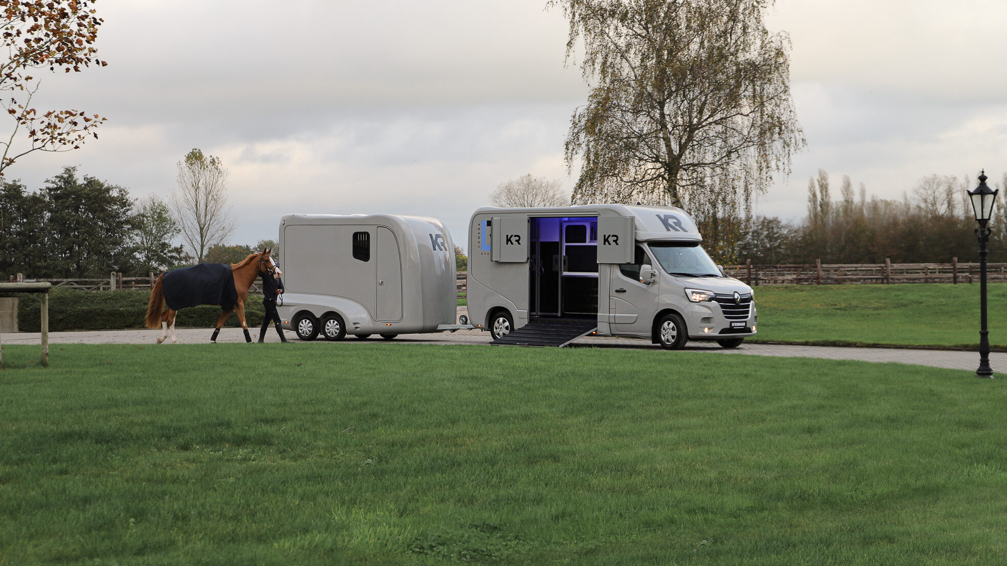 Cette camionnette pour chevaux Krismar, accompagnée de sa remorque assortie, a récemment été livrée avec beaucoup de plaisir à un client fidèle de Krismar. La partie réservée aux chevaux, tant dans le van que dans la remorque Krismar, est conçue avec un design évoquant les étalons et comprend une spacieuse zone de selle.